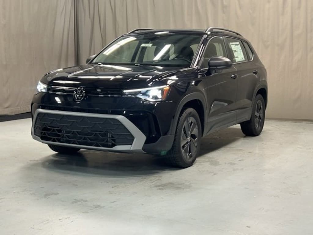 The Deep Black Pearl 2025 Volkswagen Taos 1.5T S offers a sleek, understated look with its glossy Deep Black Pearl exterior, paired with Volkswagens turbocharged 1.5-liter inline-4 engine producing about 174 hp, It comes standard with an 8-speed automatic transmission (Tiptronic), features like ABS, electronic stability control, side-curtain airbags, adaptive cruise control with stop-&-go, and 17-inch aluminum wheels, Fuel economy is respectable: around 28 mpg city / 36 mpg highway on the FWD version, with slightly lower ratings if you opt for AWD.