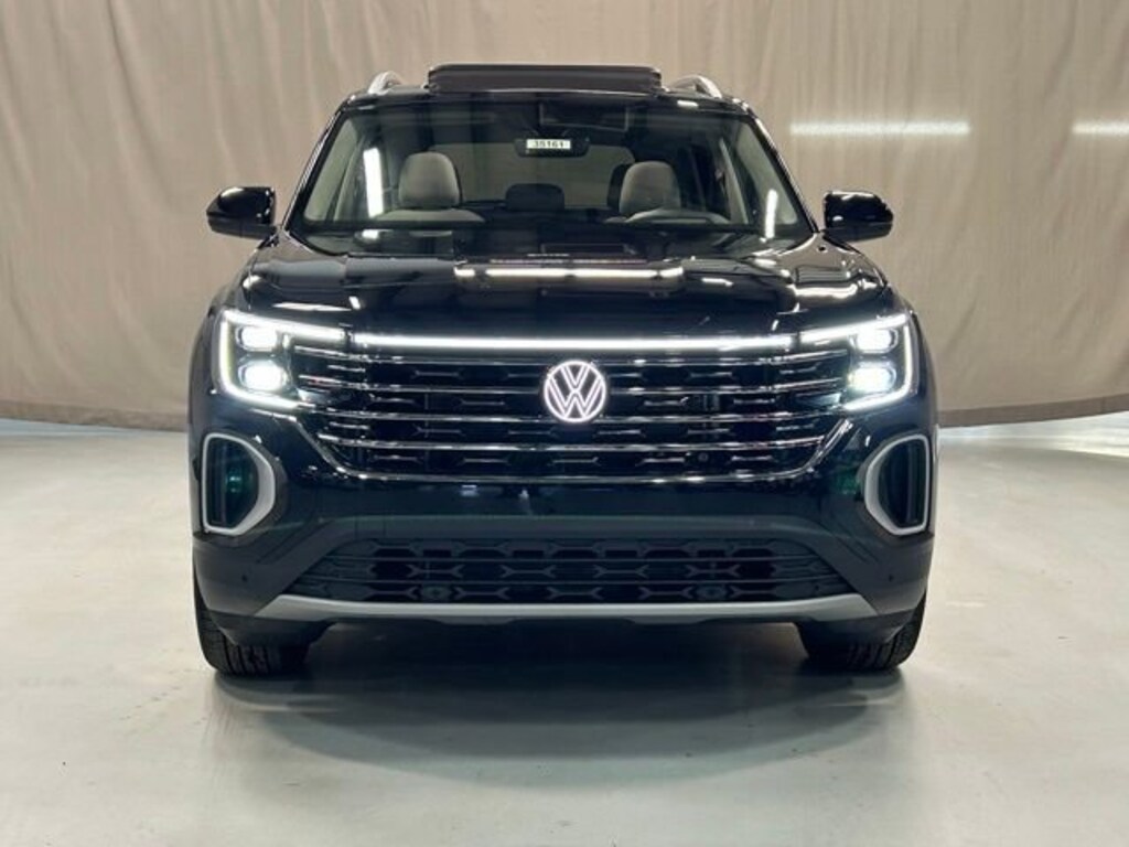 Recent Arrival! The 2026 Volkswagen Atlas 2.0T SEL in Deep Black Pearl is a sleek, three-row midsize SUV powered by a turbocharged 2.0-liter TSI engine paired with an 8-speed automatic transmission and available all-wheel drive, offering a blend of performance and practicality. It features modern safety and convenience tech like adaptive cruise control, blind-spot monitoring, a hands-free liftgate, navigation with a touchscreen interface, leather seating, and a panoramic sunroof, making it a well-equipped family hauler with a bold black exterior finish.