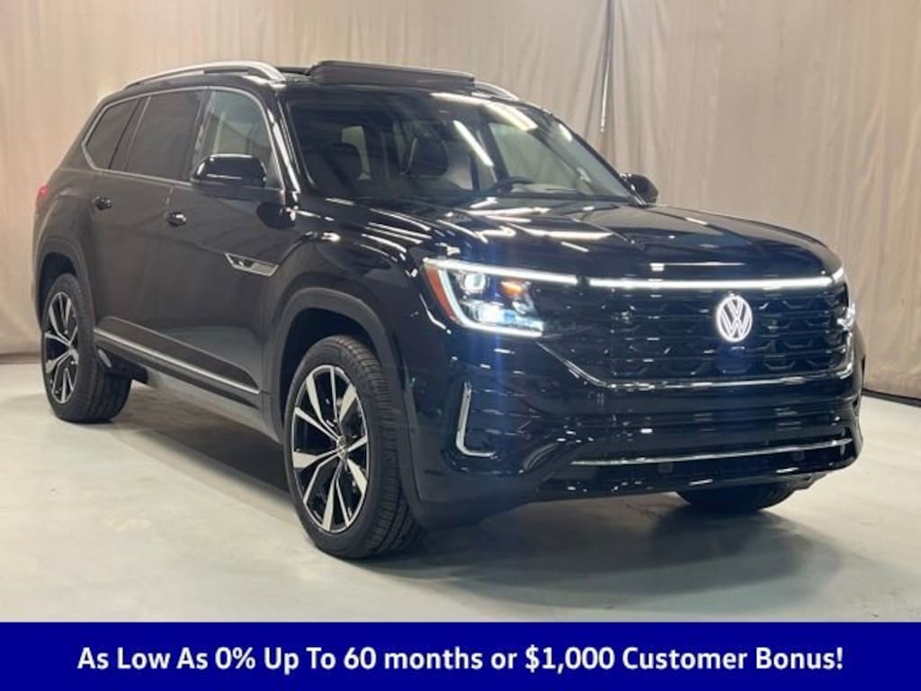 The 2026 Volkswagen Atlas 2.0T SEL Premium R-Line in Deep Black Pearl is a stylish, three-row AWD SUV powered by a turbocharged 2.0 L engine paired with an 8-speed automatic transmission, delivering around 269 hp and 273 lb-ft of torque with EPA fuel economy near 18 mpg city / 25 mpg highway. It blends premium comfort and tech with features like a large touchscreen navigation system, leather seats, adaptive cruise control, and advanced safety tech including blind-spot monitoring and lane-departure warning, all wrapped in R-Line sport-inspired styling.