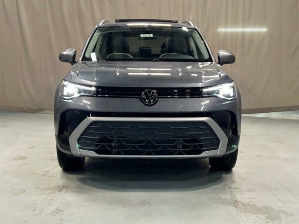 A Platinum Gray Metallic 2026 Volkswagen Taos 1.5T SE cuts a sleek, modern figure with its subtle, high-end finish. Under the hood, its 1.5-liter turbocharged engine delivers about 174 hp and 184 lb-ft of torque, paired with an 8-speed automatic for a smooth and efficient ride, It offers a roomy and functional cabin for five, with about 24.9 cu ft of cargo space in the SE AWD version, On the road, it returns an EPA-estimated 28 city / 36 highway mpg for the FWD version, All in all, its a refined and practical crossover understated yet confident, Panoramic Sunroof Package.